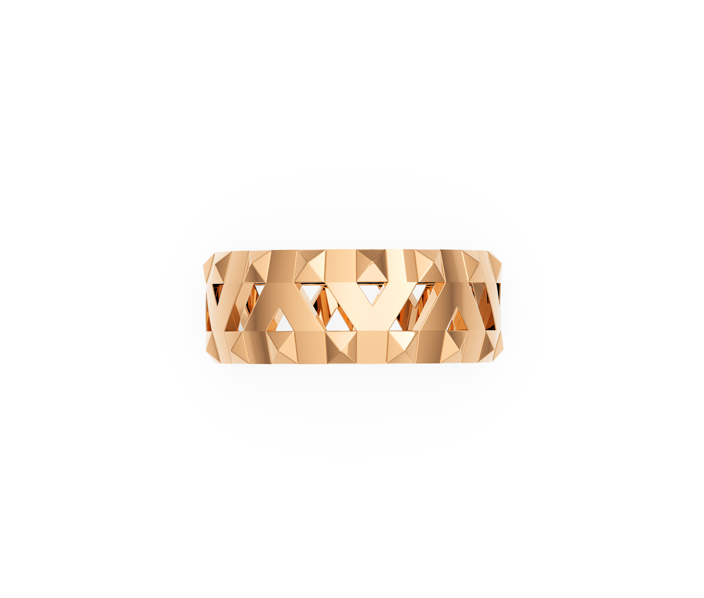 The Equality Ring is bold in form and confident in style. Crafted in 18K rose gold with a 7.5mm width, its surface features distinct geometric lines that add structure and character to the clean band.