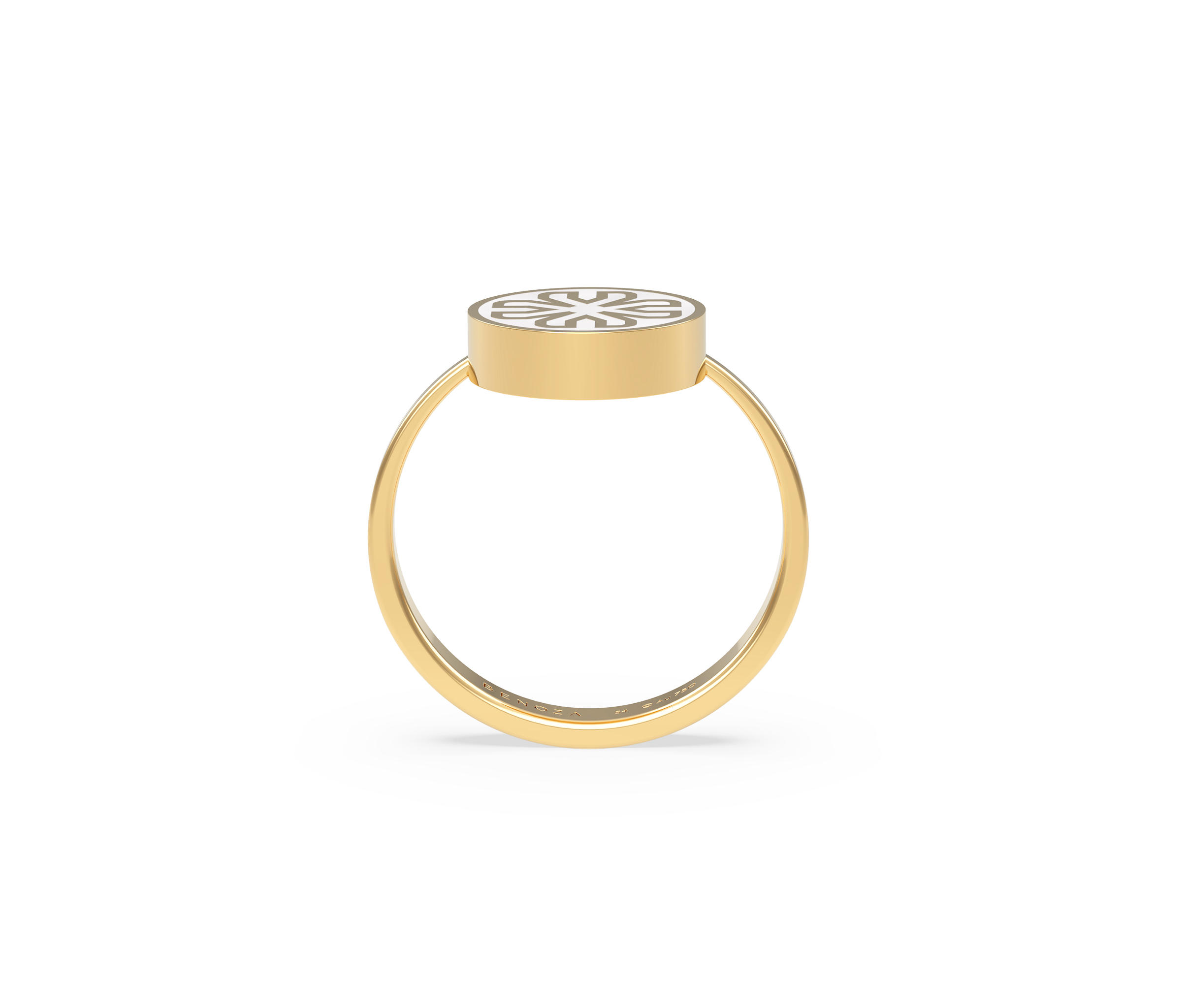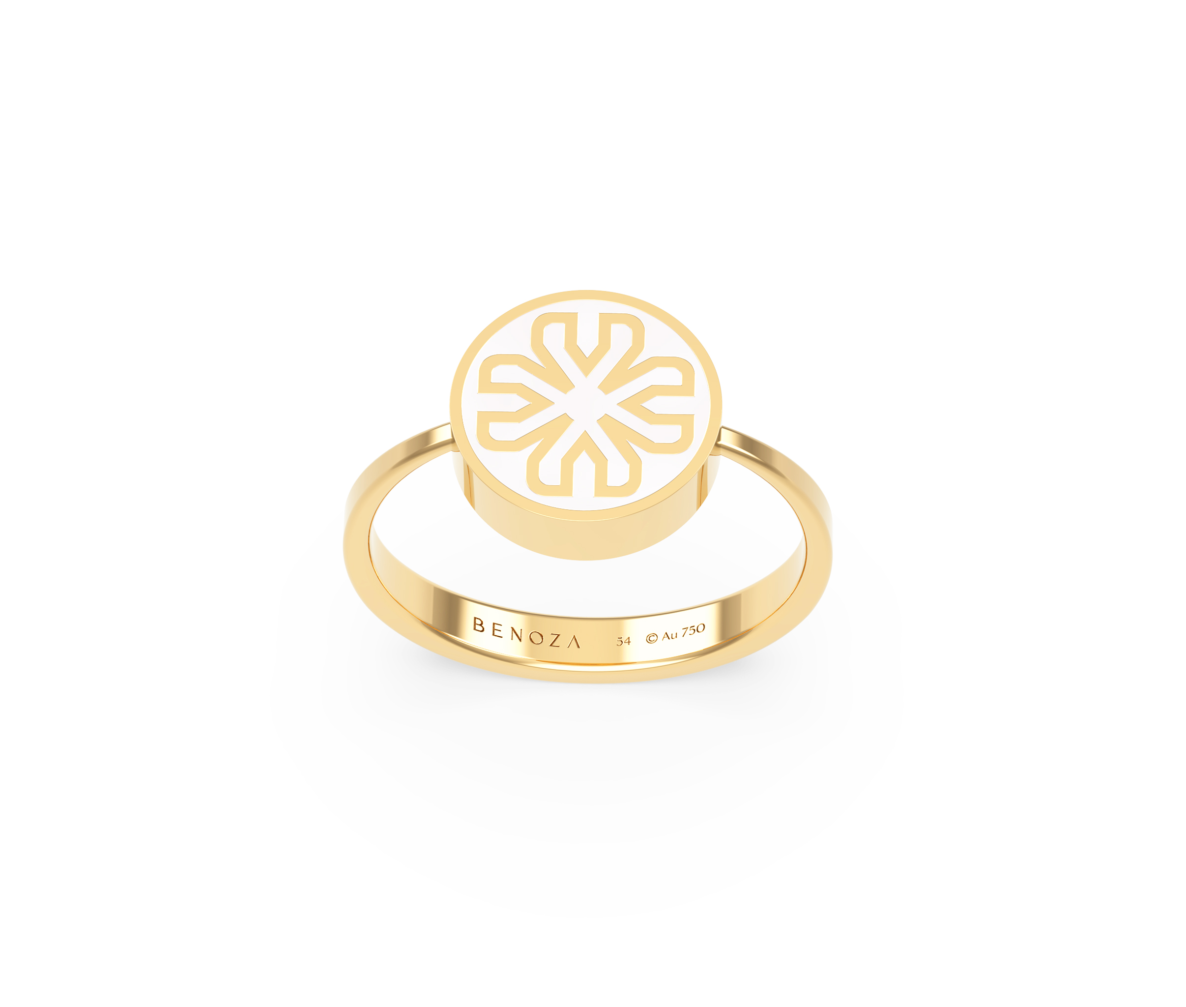 The Integrity Ring is a refined blend of softness and structure. Crafted in 18K yellow gold and inlaid with natural mother of pearl, it pairs warm metal with the subtle shimmer of an iridescent surface.